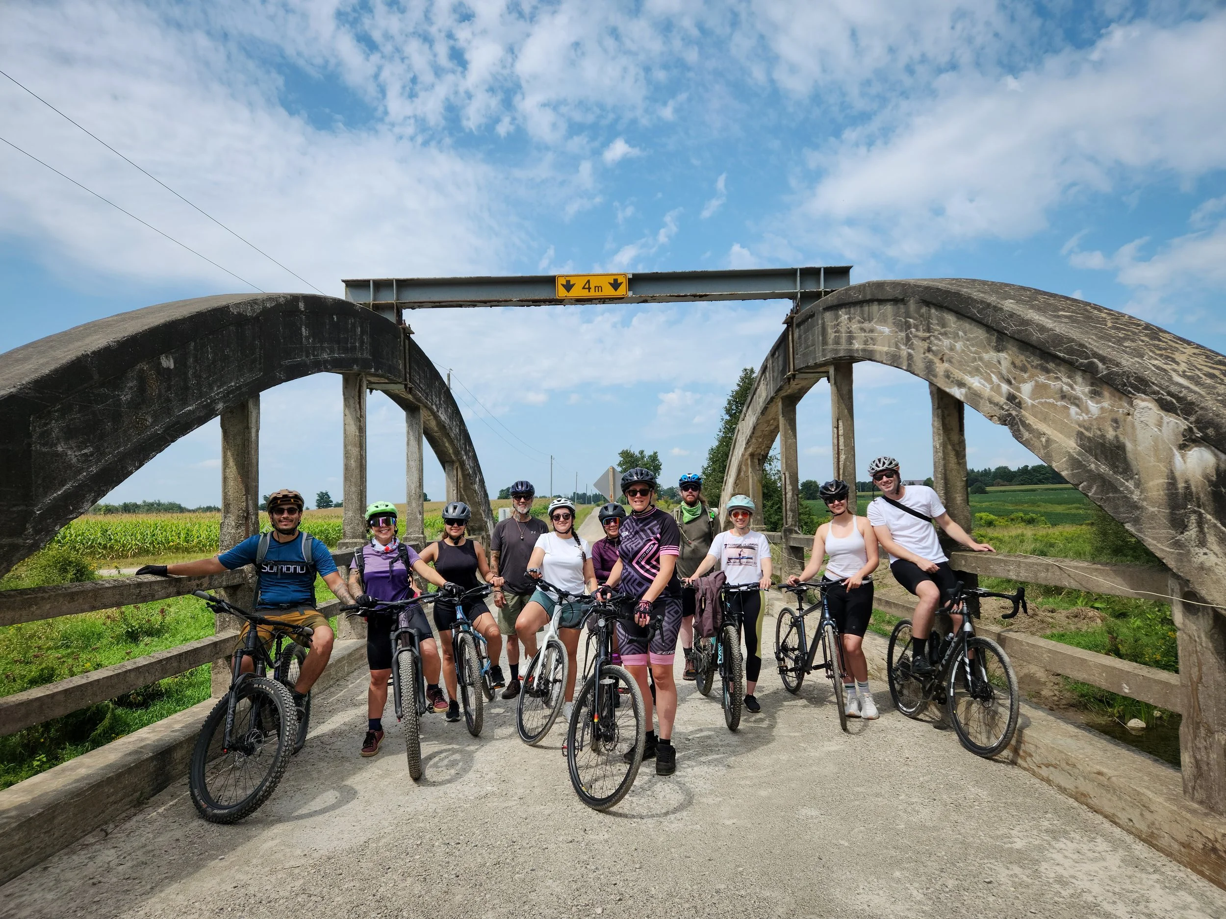 An all-surface bike (hybrid, gravel bike, mountain bike, or road bike with 35mm tires or wider) should work well. Helmets are mandatory. Rear lights and an extra tube for your tires are also a good idea but optional. Every rider must take responsibility for showing up with a well-maintained, safe bike to ride. Rentals can be arranged.